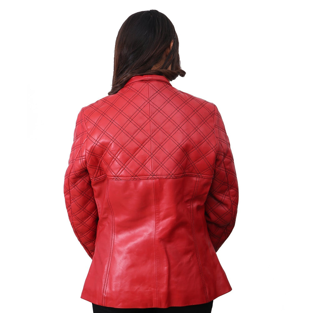 Womens Boda Style Quilted Leather Biker Jacket Red