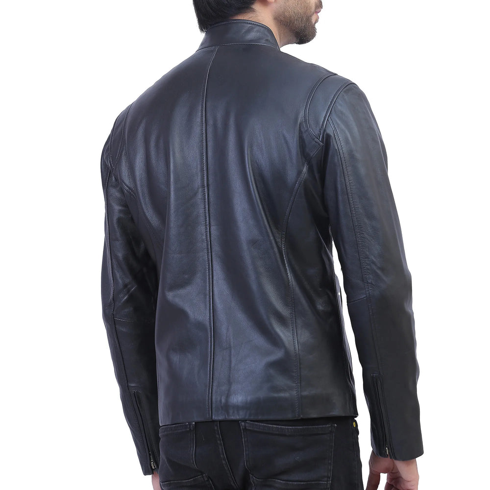 Men's Black Cafe Racer Lambskin Leather Jacket