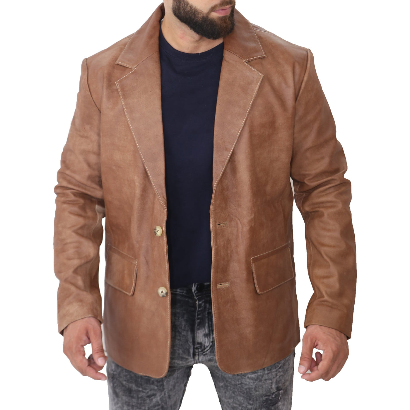 Men's Fashion Brown Blazer Coat - Male / Real Leather / X-Small