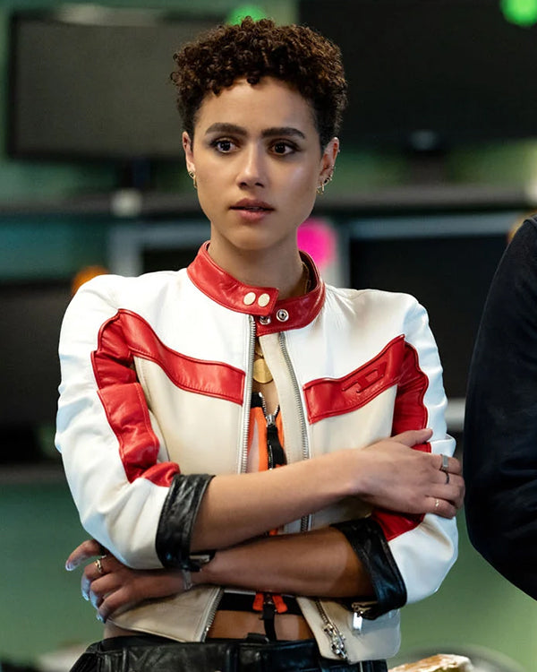 Nathalie Emmanuel Fast X 2023 Ramsey White Leather Jacket With Red Stripes